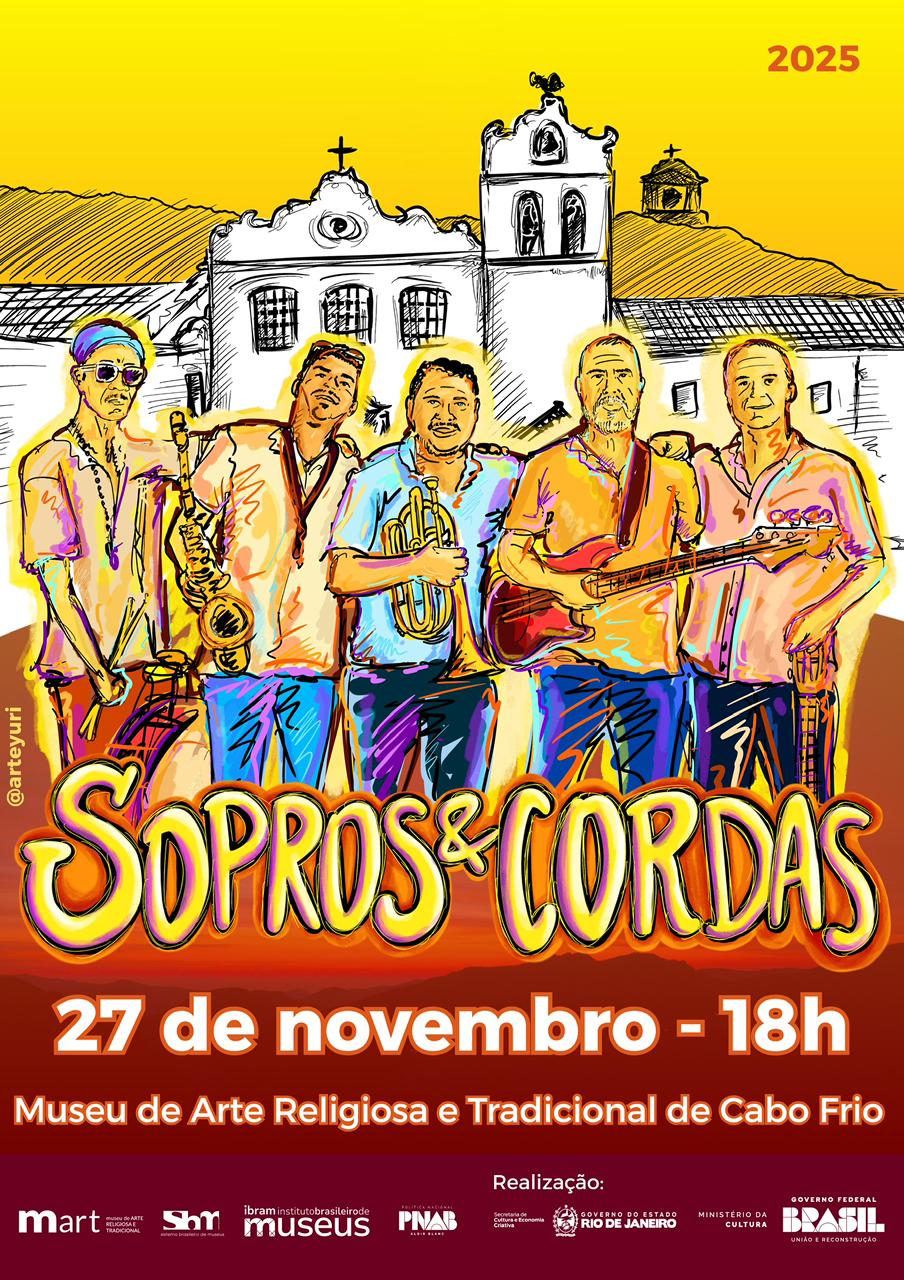 A próxima edição do projeto Sopros & Cordas será no dia 27 de novembro, às 18h, no Museu de Arte Religiosa e Tradicional (Mart) de Cabo Frio.