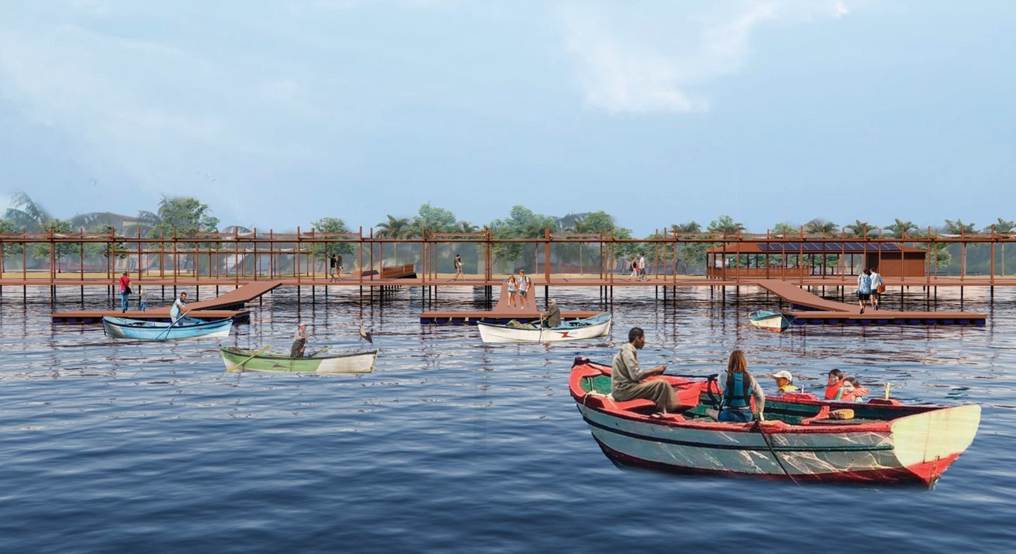 – O início da Rota se configura como um grande deck com espaço para memorial expositivo, sanitários, bilheteria, piscina natural, redário, atracação das canoas e áreas de convivência. Os outros três pontos são instalações flutuantes que funcionam como marcos na cidade e convidam o usuário a completar seus espaços. São propostas soluções replicáveis, flexíveis e vernaculares para a fácil adequação aos diferentes tipos de geografias da Rota, reforçar a tradição pesqueira através da arquitetura e respeitar a paisagem existente na cidade - contou a arquiteta, revelando que o projeto nasceu em uma conversa que ela teve com os pescadores durante um processo de pesquisa. Na verdade, a ideia da Rota partiu deles, e é um desejo antigo. Eu apenas dei um nome, escolhi os pontos de intervenção a partir do que eles me contaram e do que pesquisei, e desenvolvi arquiteturas que articulam essa ideia – explicou.