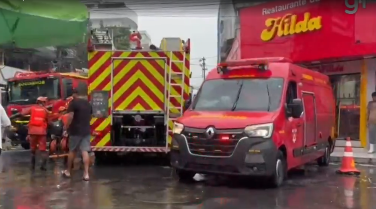No bairro Vila Nova o teto de um restaurante desabou em cima de uma funcionária, que foi resgatada por bombeiros - Crédito: Reprodução Inter TV