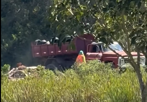 Caminhões que prestam serviço para a Companhia de Serviços Públicos de Cabo Frio (Comsercaf), autarquia municipal de limpeza urbana, foram flagrados despejando lixo e resíduos dentro da área da Fazenda Campos Novos. O material jogado na fazenda contém pneus, restos de móveis, sacos plásticos, papelão e outros dejetos.
